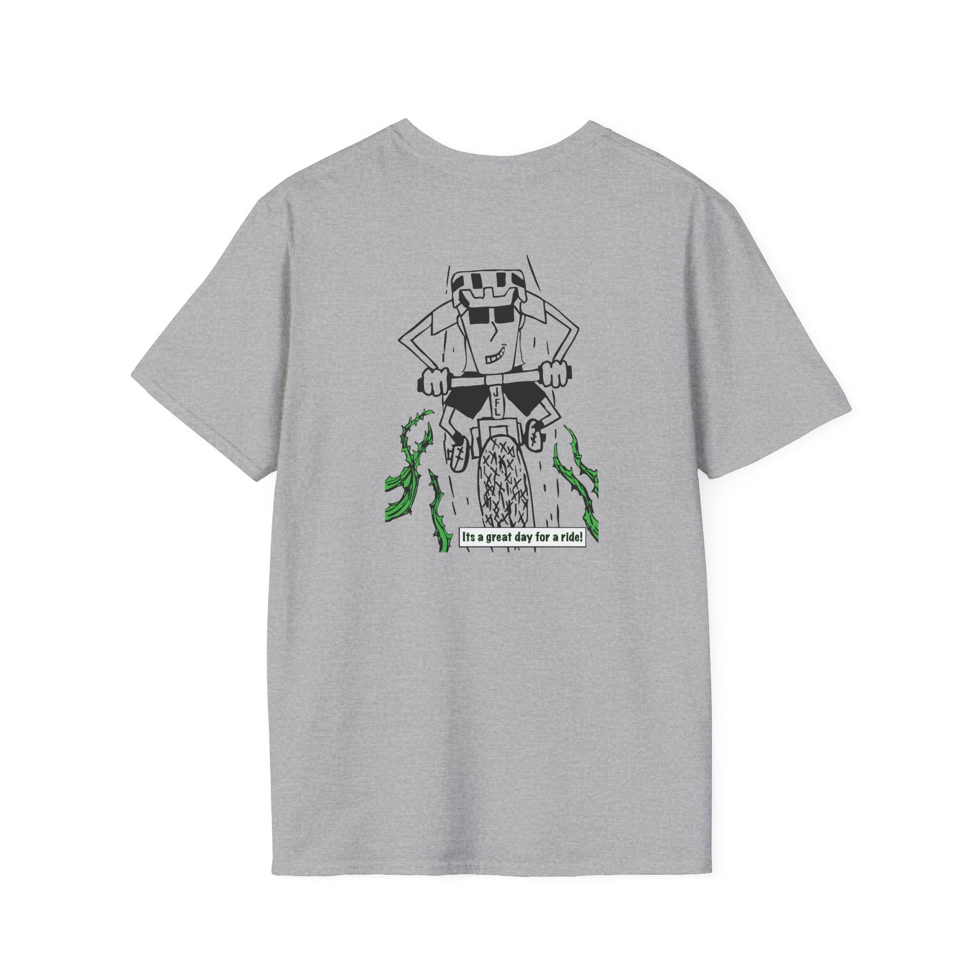 This T-Shirt features a fun design inspired by mountain bike rides in greenbrier patches. Made from soft and durable fabric, this unisex tee is perfect for casual wear. Ideal for adults looking for a comfortable and stylish shirt to wear during outdoor activities or casual outings. Great for gifting during birthdays or any outdoor enthusiasts.